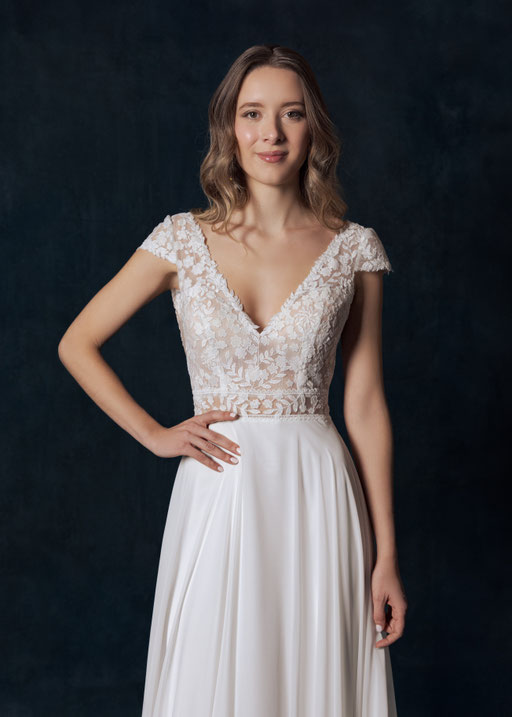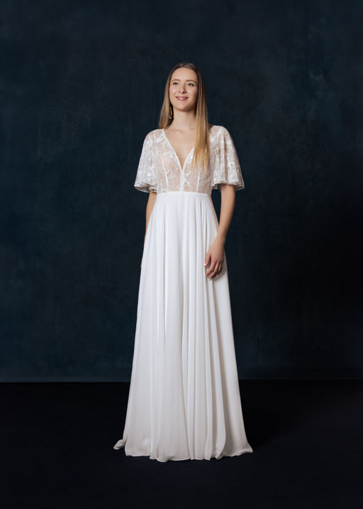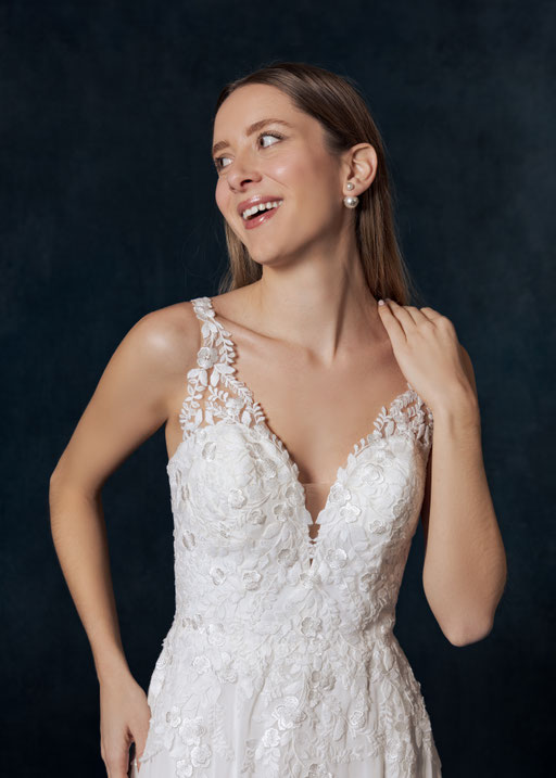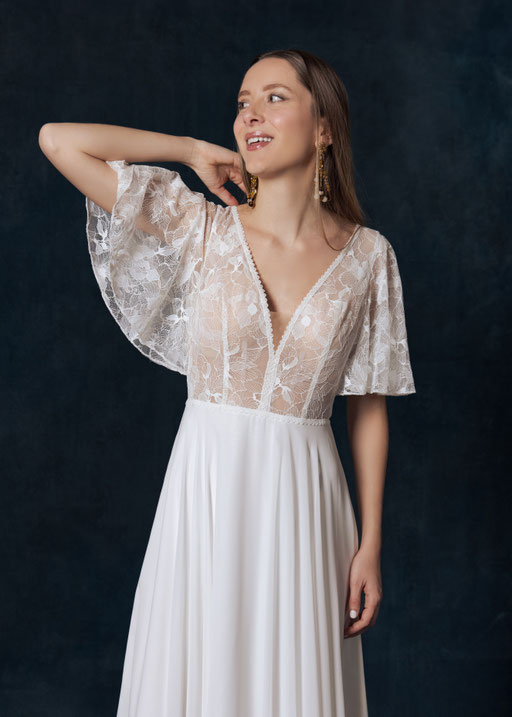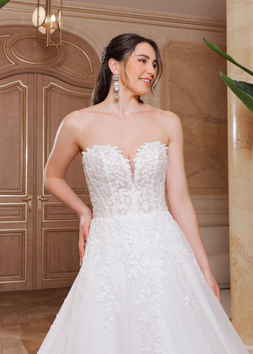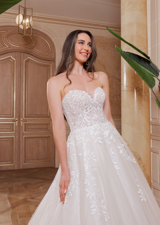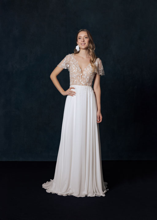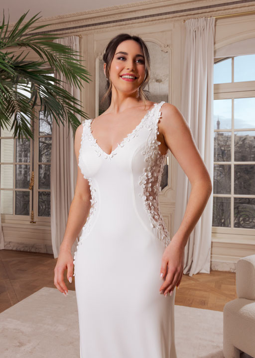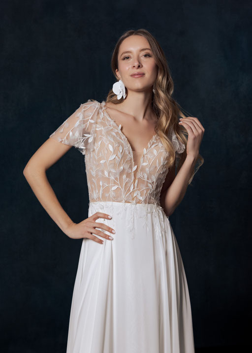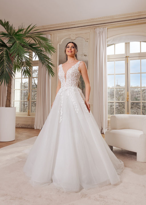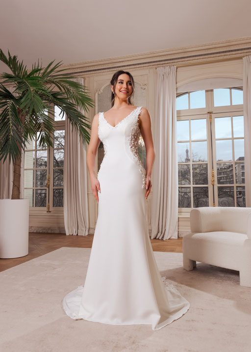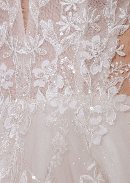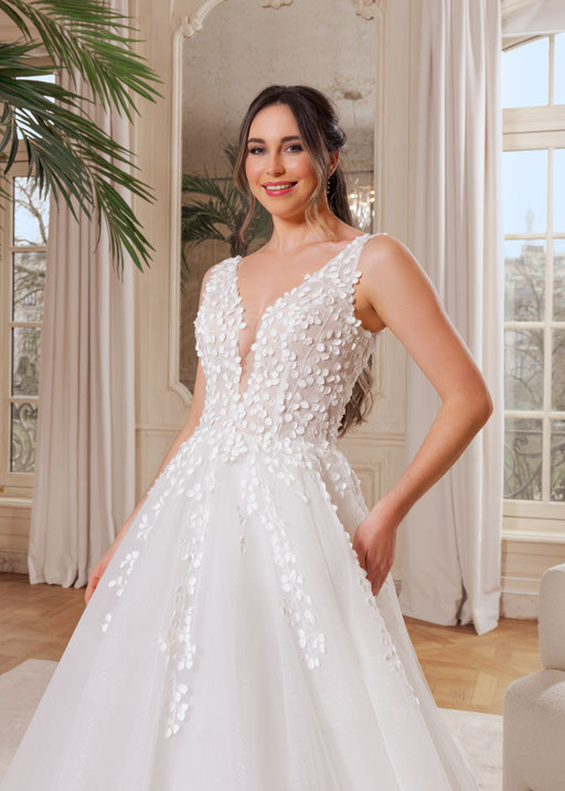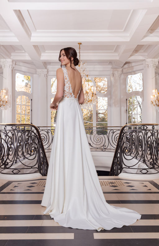 Un large choix de style, de matières, de coupes disponible en boutique... mousseline, tulle, tulle pailleté, satin duchesse, satin souple, satin stretch, mikado, dentelles, dentelles perlées, broderies...